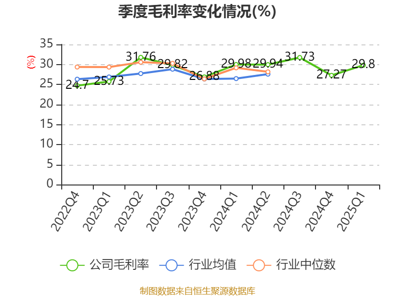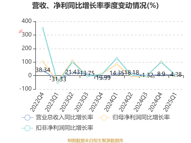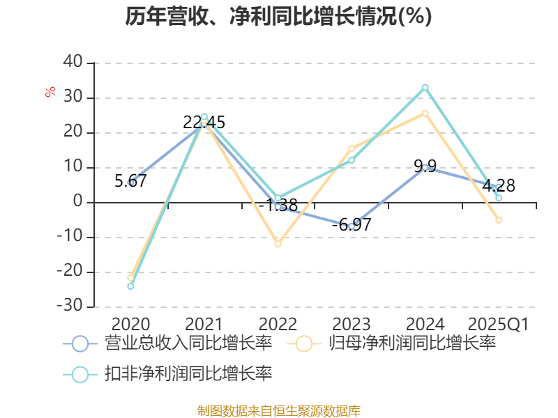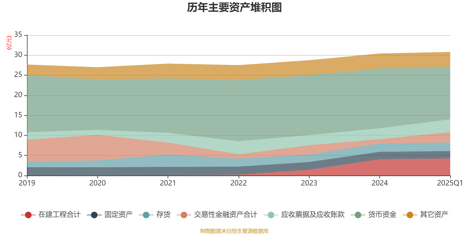 资产重大变化方面,截至2025年一季度末,公司货币资金较上年末减少11.84%,占公司总资产比重下降6.37个百分点;交易性金融资产合计较上年末增加141.14%,占公司总资产比重上升4.89个百分点;应收票据及应收账款较上年末增加16.35%,占公司总资产比重上升1.33个百分点;在建工程合计较上年末增加5.27%,占公司总资产比重上升0.52个百分点。