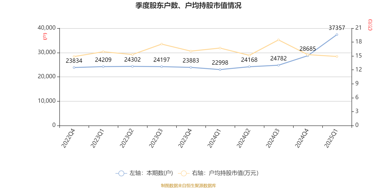 一季报显示,2025年一季度末的公司十大流通股东中,新进股东为阿巴马元享127号私募证券投资基金、瑞众人寿保险有限责任公司-分红产品,取代了上年末的嘉实价值精选股票型证券投资基金、大成策略回报混合型证券投资基金。在具体持股比例上,永诚1号证券私募基金、基本养老保险基金一零零三组合、刁守伟持股有所下降。