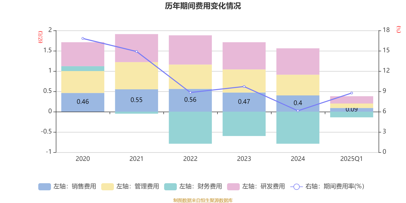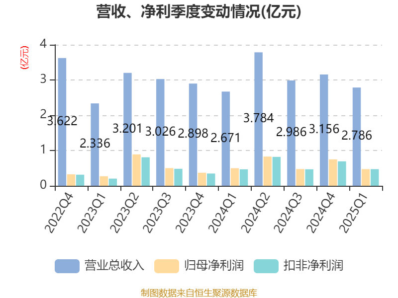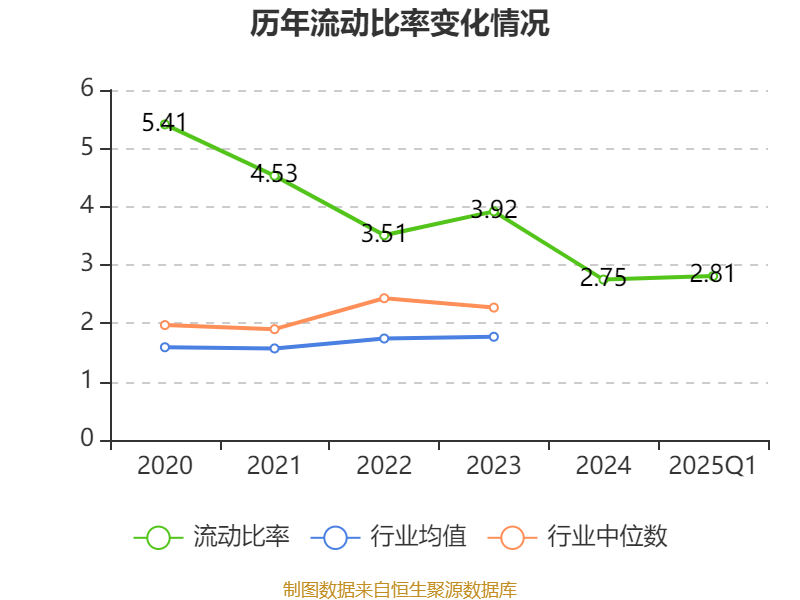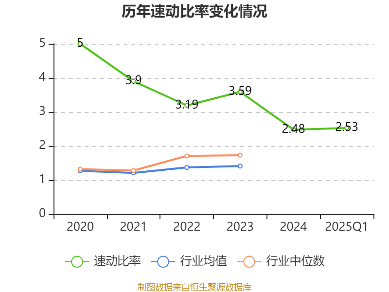 2025年第一季度,公司流动比率为2.81,速动比率为2.53。