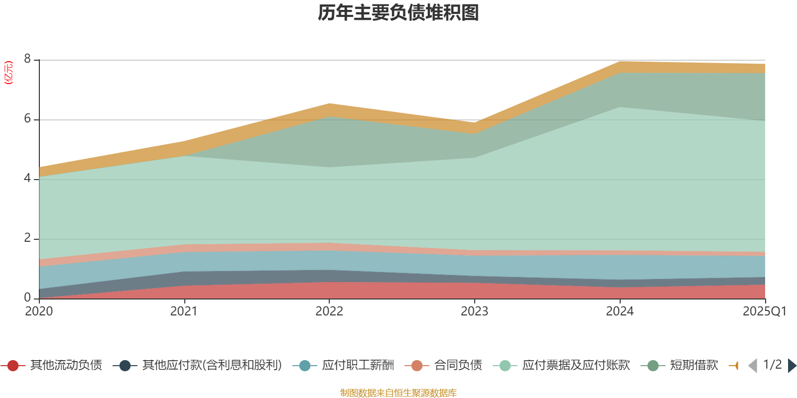 负债重大变化方面,截至2025年一季度末,公司应付票据及应付账款较上年末减少8.65%,占公司总资产比重下降1.55个百分点;短期借款较上年末增加39.11%,占公司总资产比重上升1.41个百分点;应付职工薪酬较上年末减少15.05%,占公司总资产比重下降0.44个百分点;其他流动负债较上年末增加24.88%,占公司总资产比重上升0.28个百分点。