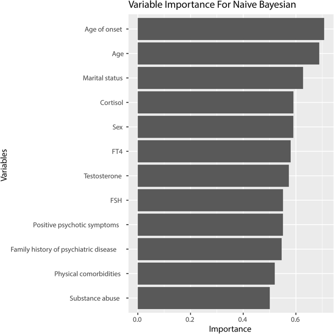 发病年龄被识别为最重要的预测变量,其次为婚姻状况、皮质醇水平,而FT4和睾酮等激素也在预测中扮演重要角色。