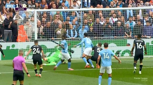 比赛第12分钟乐蒙网,多库边路强突后射门被扑,伯恩利球员自摆乌龙,曼城1-0伯恩利。