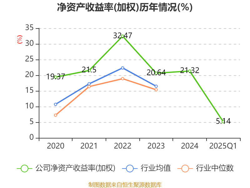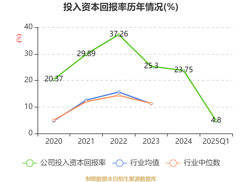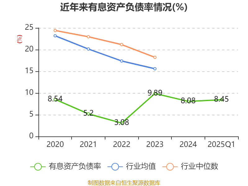 盈利能力方面, 2025年一季度公司加权平均净资产收益率为5.14%,同比上升0.41个百分点。公司2025年第一季度投入资本回报率为4.8%,较上年同期下降0.49个百分点。
