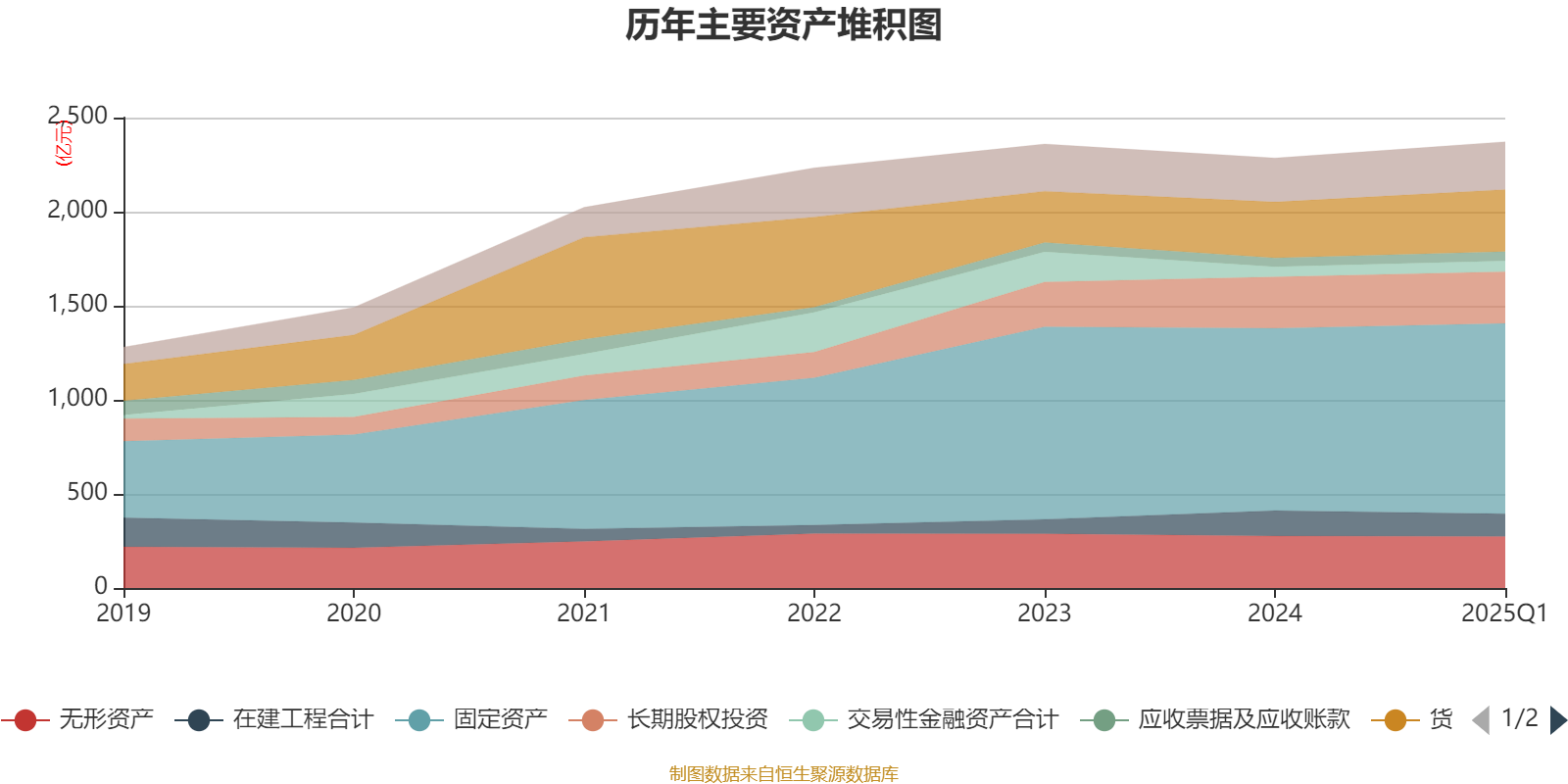 资产重大变化方面,截至2025年一季度末,公司货币资金较上年末增加11.01%,占公司总资产比重上升0.91个百分点;在建工程合计较上年末减少11.05%,占公司总资产比重下降0.85个百分点;无形资产较上年末减少0.71%,占公司总资产比重下降0.52个百分点;长期股权投资较上年末增加1.06%,占公司总资产比重下降0.31个百分点。