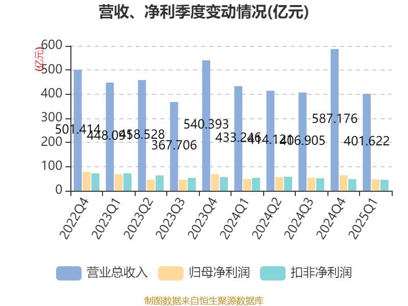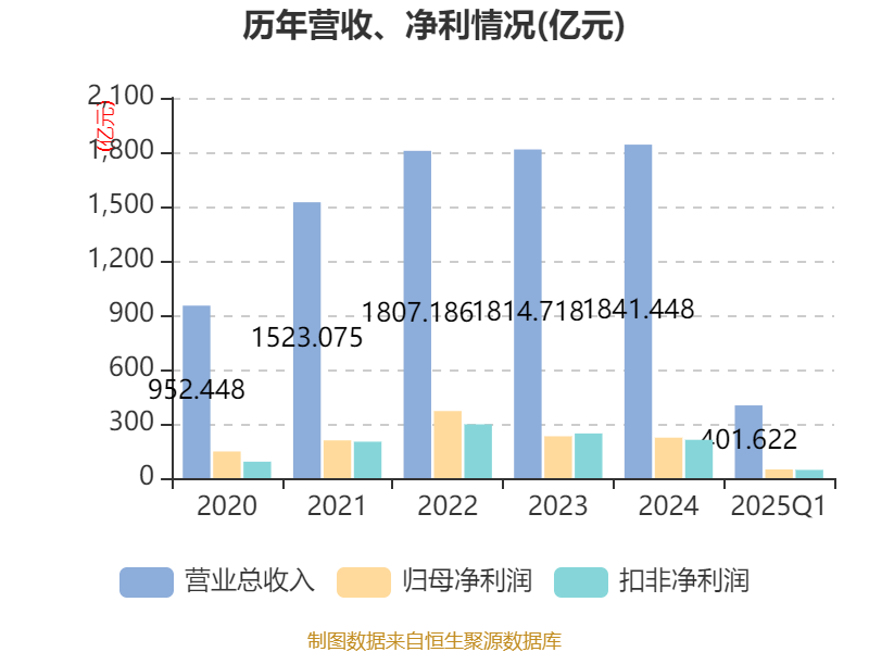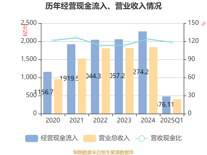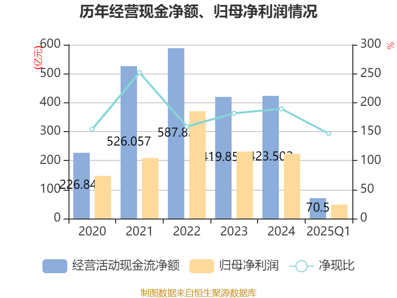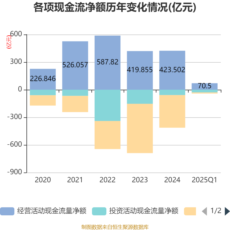 截至2025年一季度末牛操盘,公司经营活动现金流净额为70.5亿元,同比下降18.51%;筹资活动现金流净额-11.73亿元,同比增加6213.78万元;投资活动现金流净额-30亿元,上年同期为-20.7亿元。