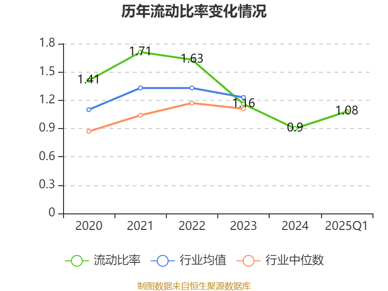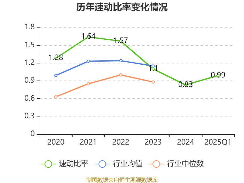 2025年第一季度,公司流动比率为1.08,速动比率为0.99。